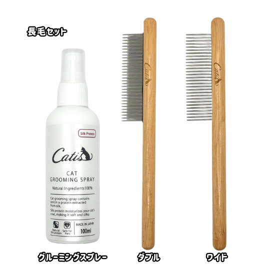 長毛の猫:ワイド → ダブル の順に使用。ざっくりほぐしてから抜け毛を除去します。